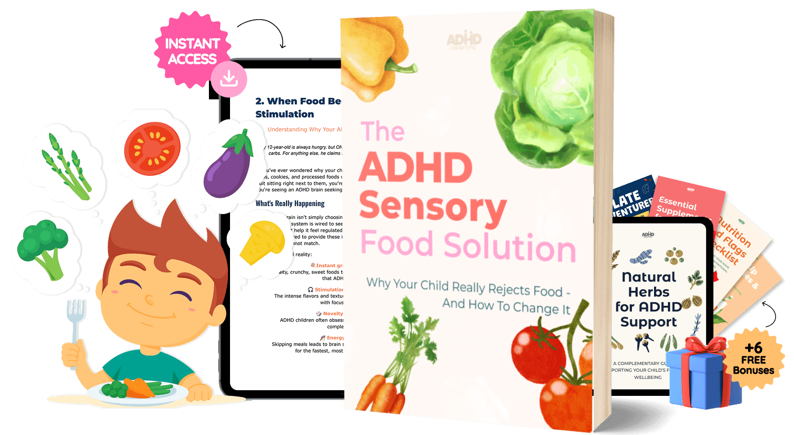 Every strategy in the guide is specifically designed for how your child's ADHD brain processes food, sensory input, and motivation.